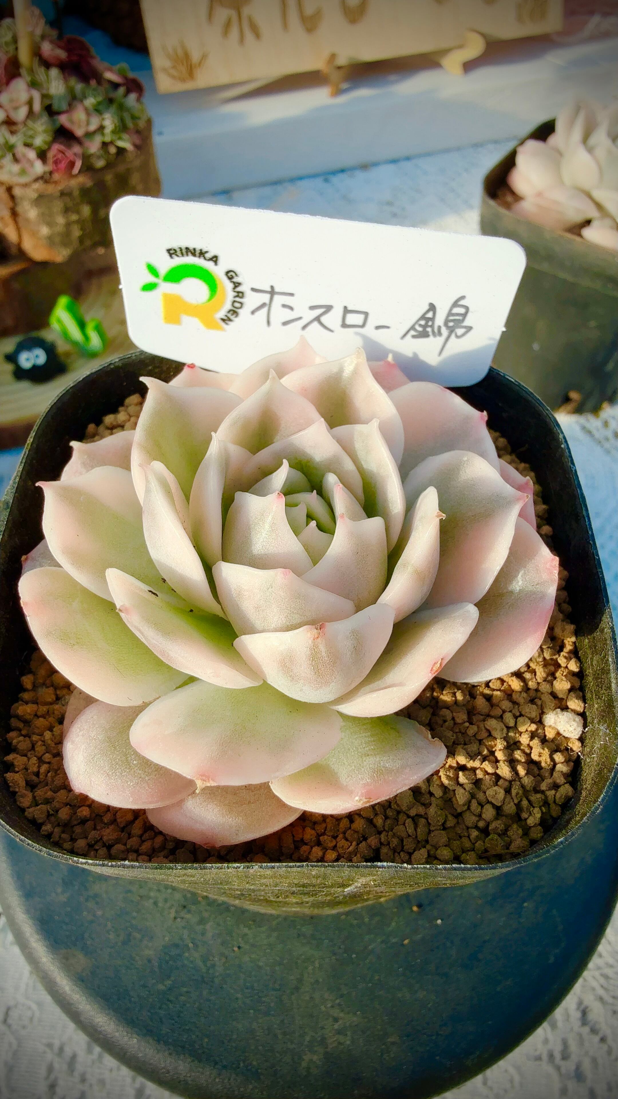 オンスロー E. 'Onslow' の斑入りタイプ。同時期に入手した斑入りは白っぽいものが多かった中、ほんのりアイボリーがかっていて、紅葉でピンクに色づきやすいのがちょっと違った雰囲気を醸しています。
