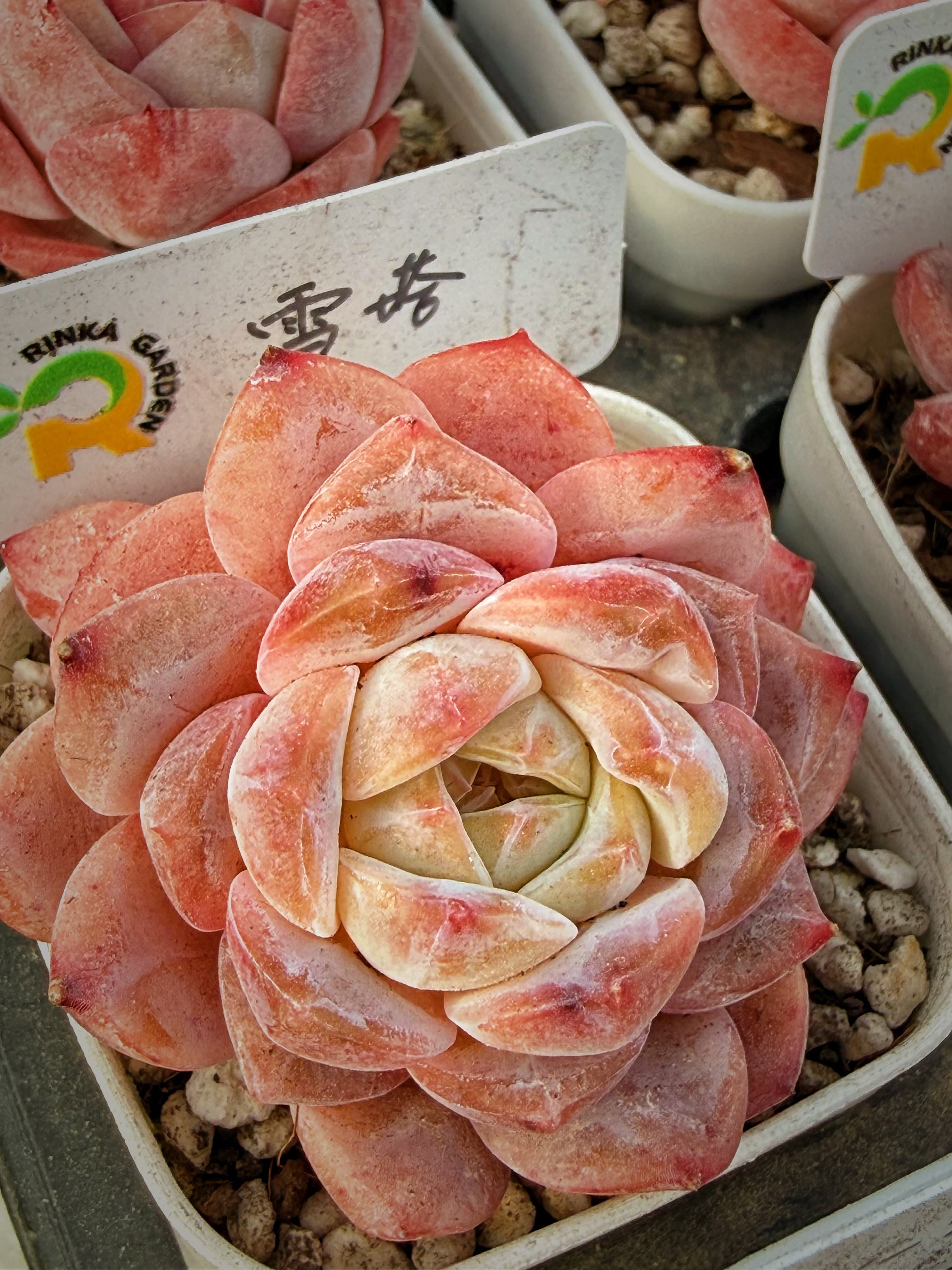 「雪塔」は、ほんのりピンク色に染まる厚みのある葉が、幾重にも重なって小さな塔のように生長する姿が魅力です。