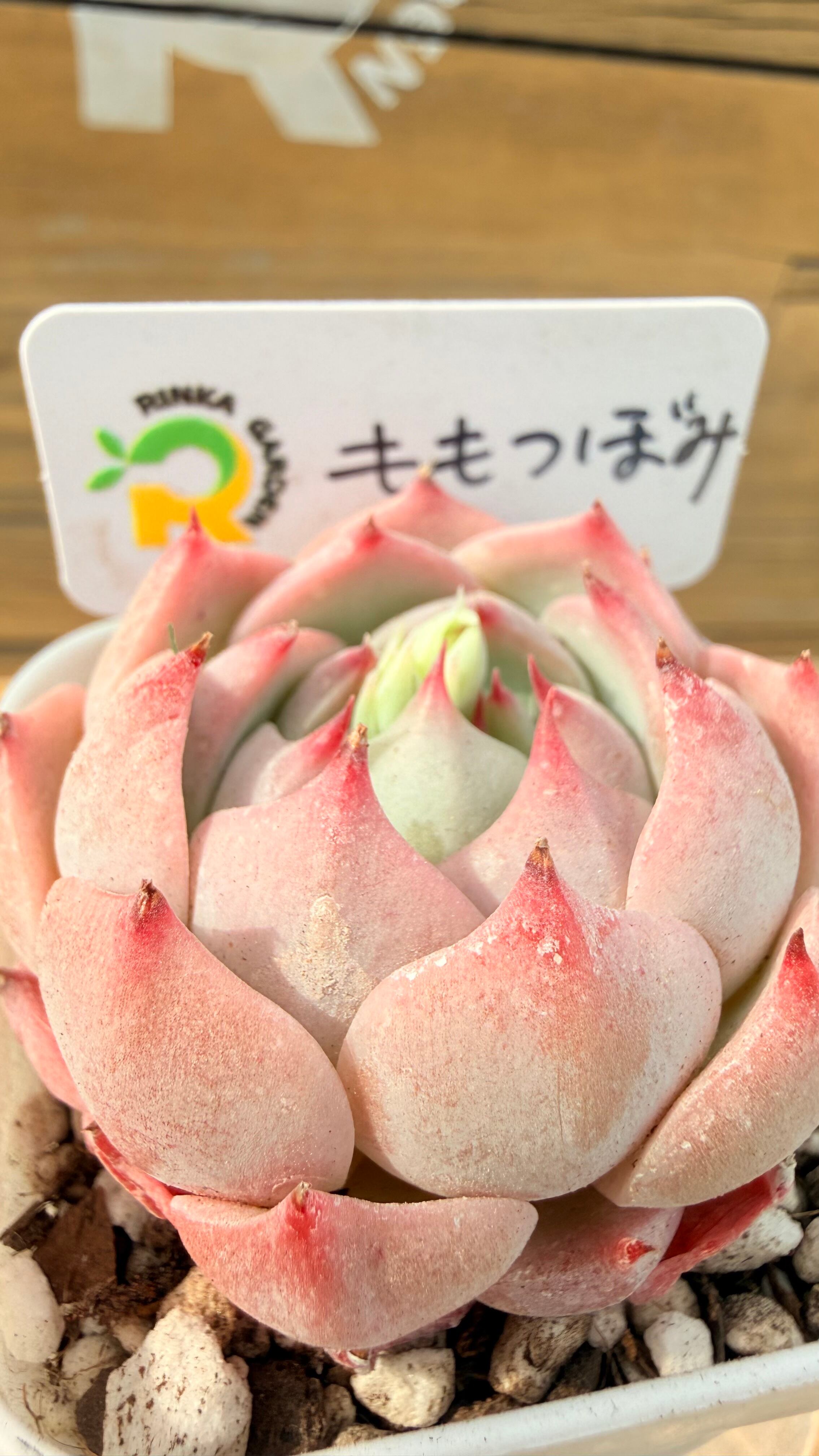 「桃つぼみ」は、その名の通り、まだ開ききる前の桃の花のつぼみのように、ぎゅっと小さくまとまり、どこか愛おしさを感じさせる姿が魅力の品種です。