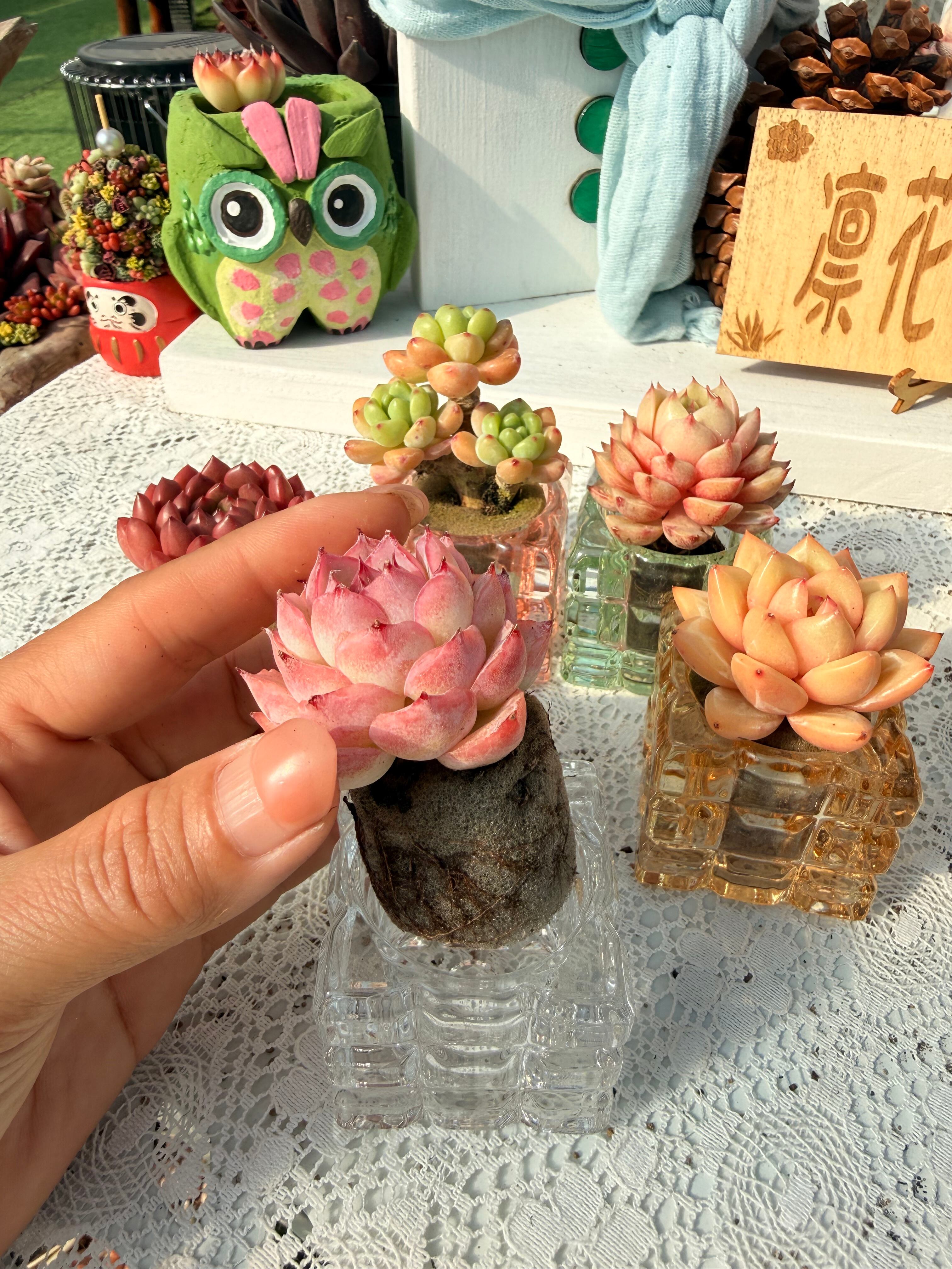 届いたら、そのままお好みの器(キャンドルホルダー・浅鉢・一輪挿し等)に自由にディスプレイ。月に一度の水浸しだけで、清潔に管理できる「小さな移動式庭園」の完成です。