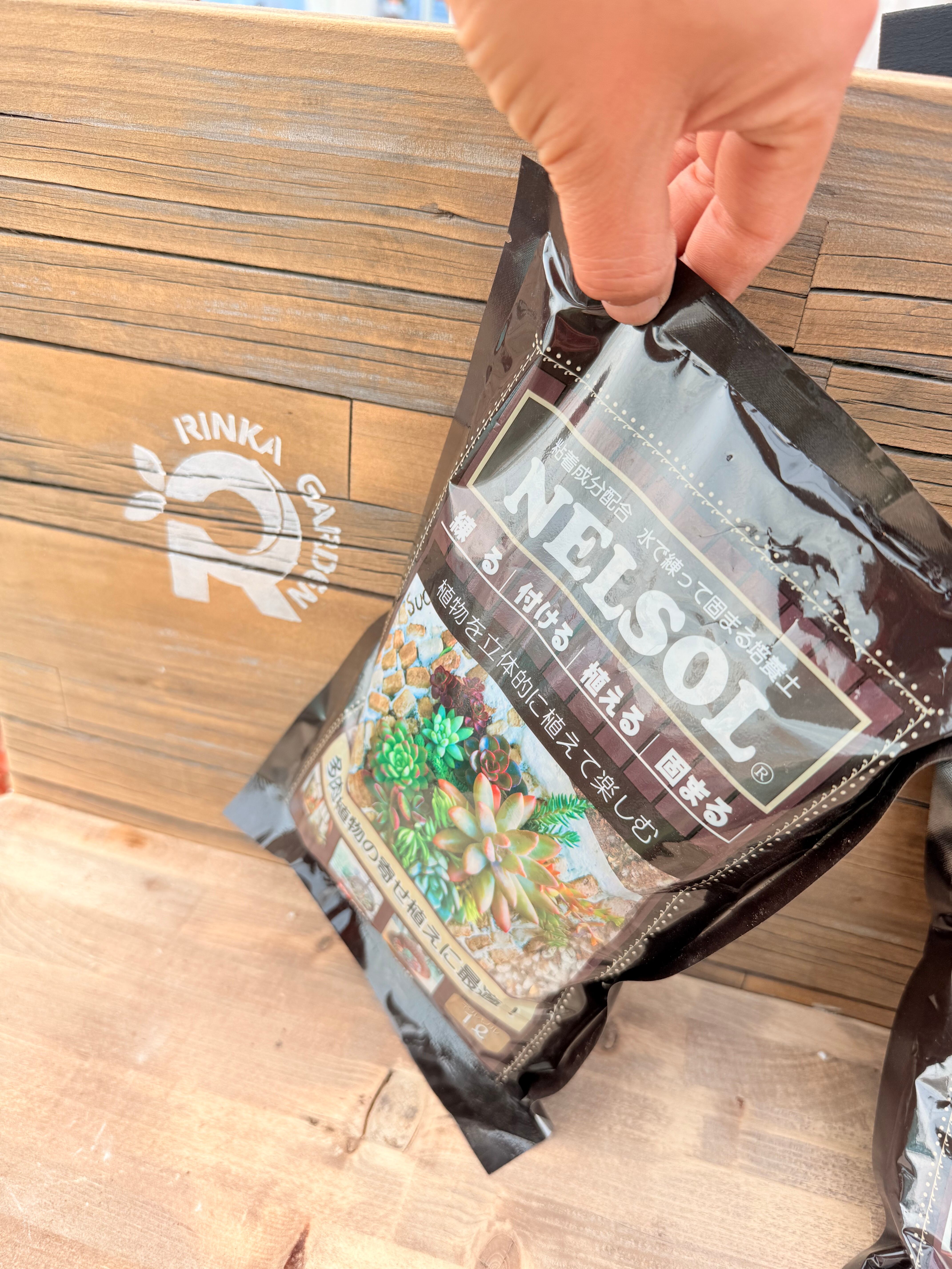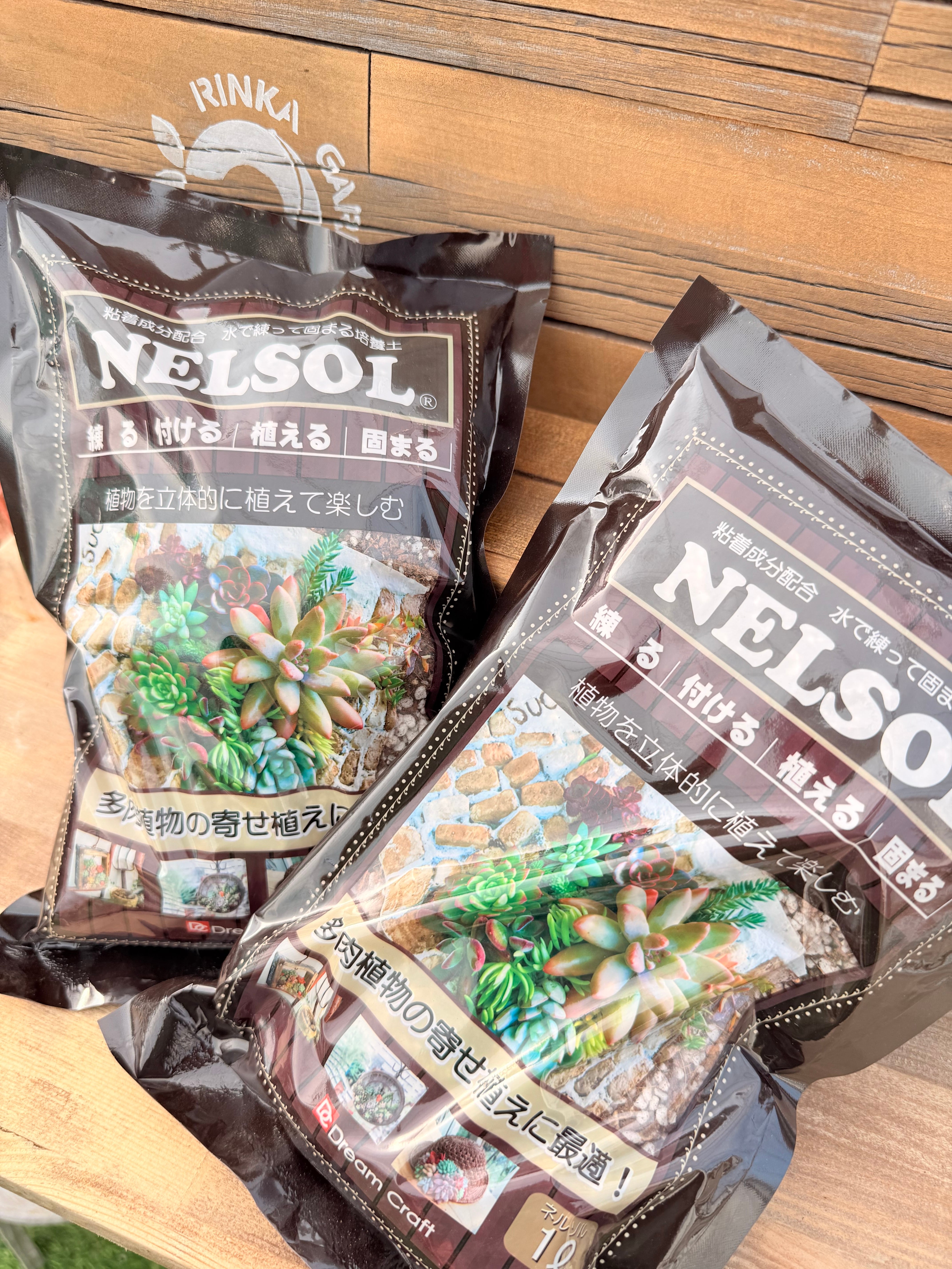 多肉植物の寄せ植えにぴったりの「ネルソル」は、水を加えると粘り気が出て、乾くと固まっちゃうふしぎな土なんだよ♪