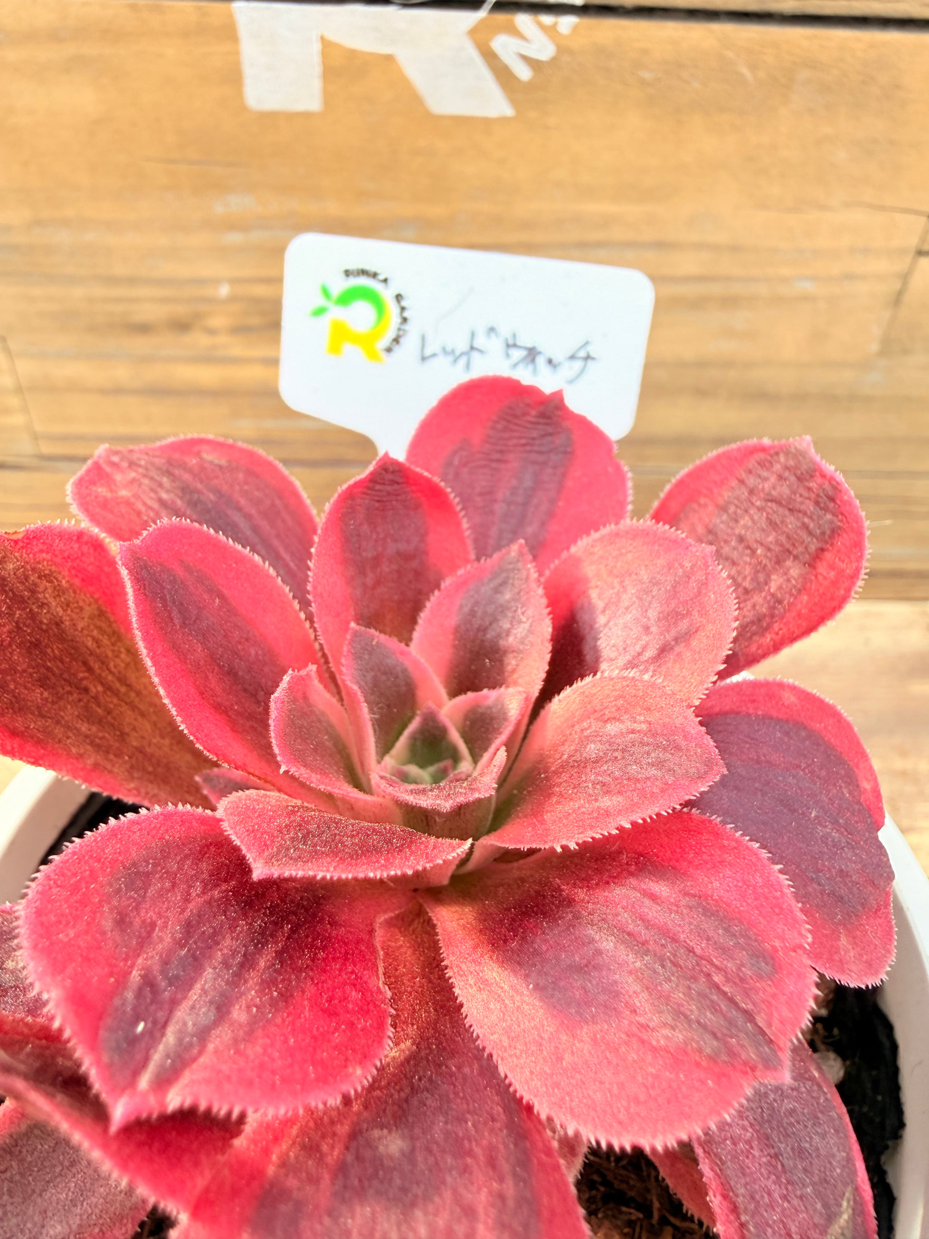 「レッドウィッチ」という名前にふさわしい、情熱的な赤色が印象的なアエオニウム属の多肉植物です。ベンケイソウ科アエオニウム属に分類され、冬から春にかけて美しく色づく品種です。