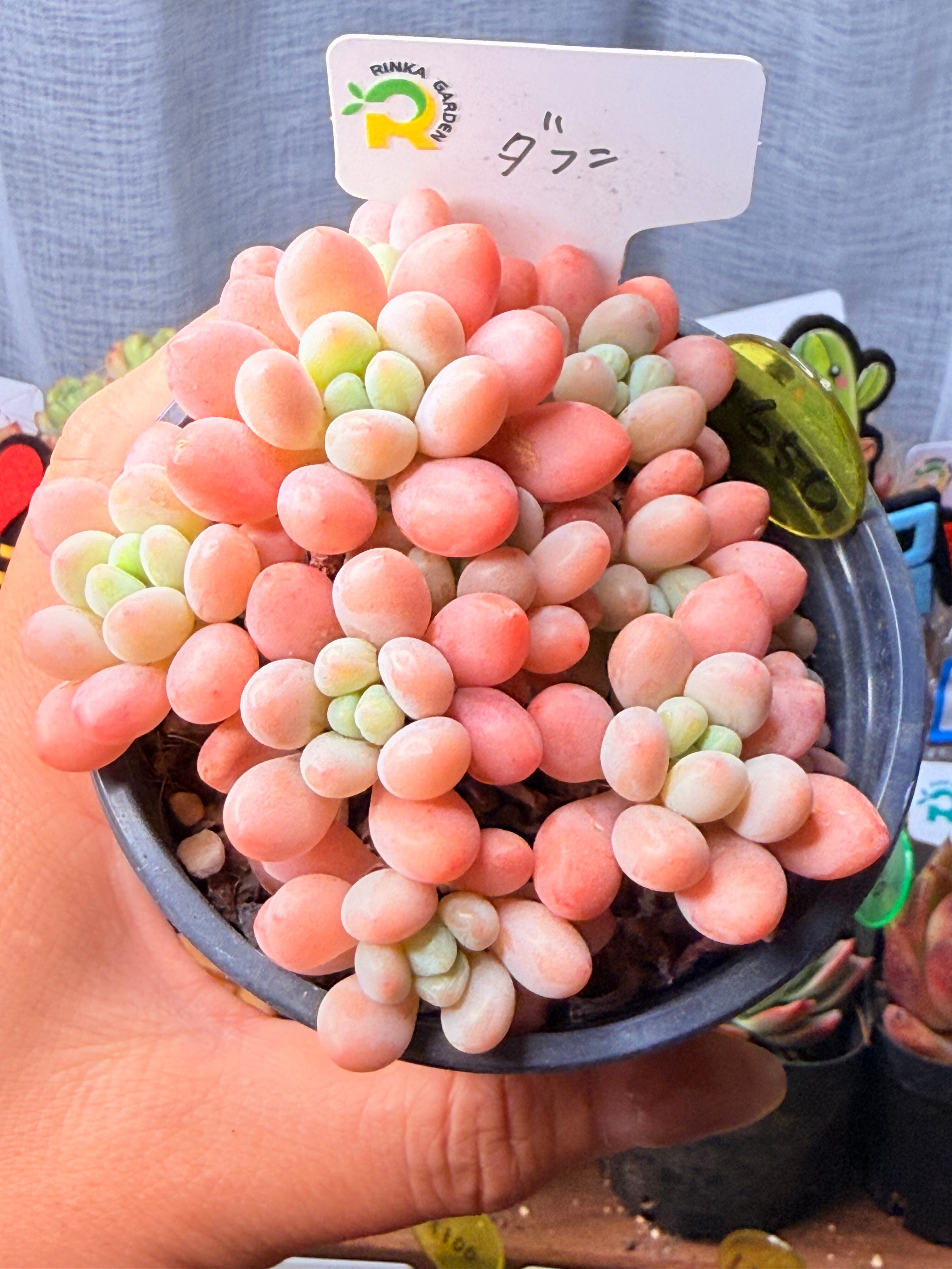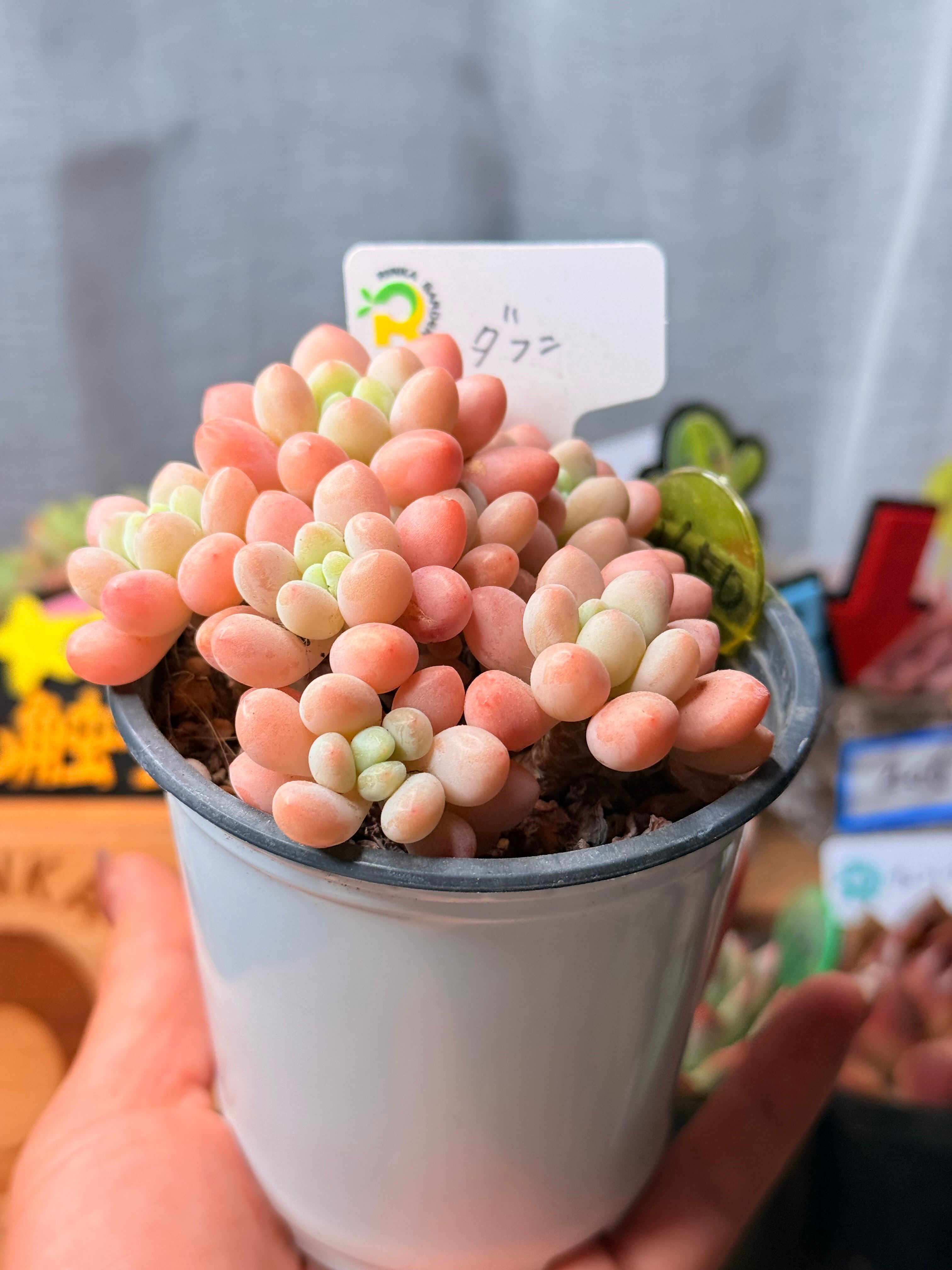 ダフニは、その愛らしい名前と小さなジェリービーンズのような姿が魅力の品種です。9cmポットの群生ならではのボリューム感を、ぜひあなたのコレクションでお楽しみください。育つほどにピンク色が濃くなるその変化も、育てる醍醐味の一つです
