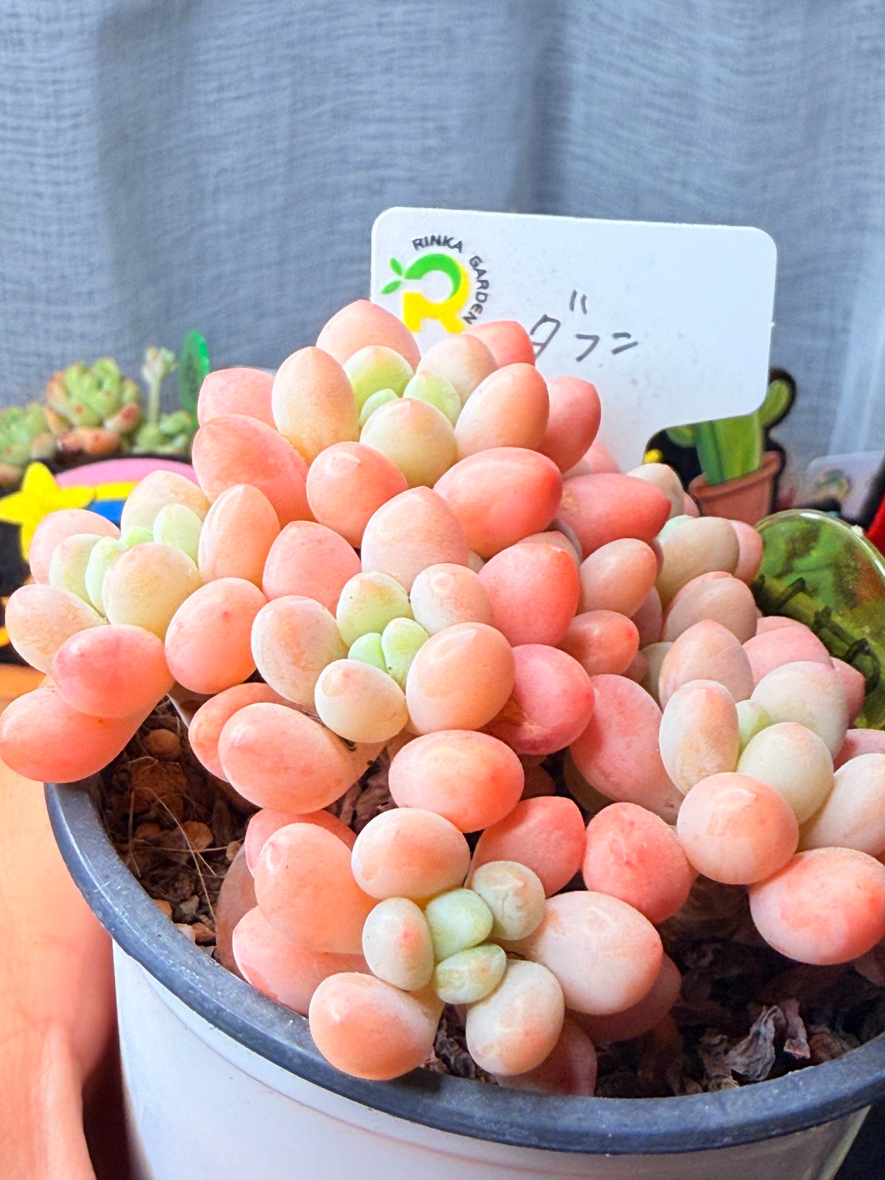 一粒一粒が小さな宝石。グリーンからピンクに染まる、つぶつぶ群生のハイブリッド