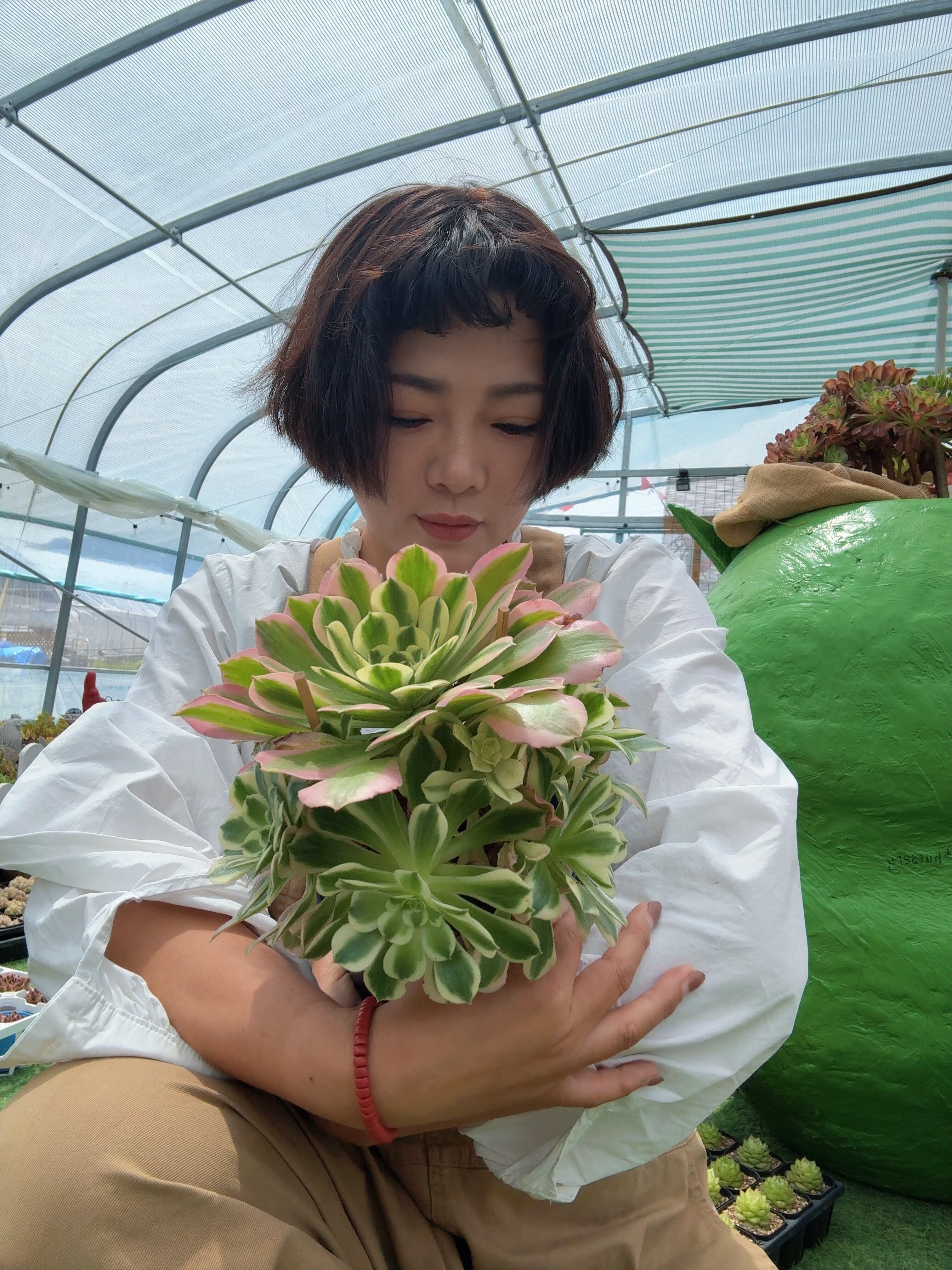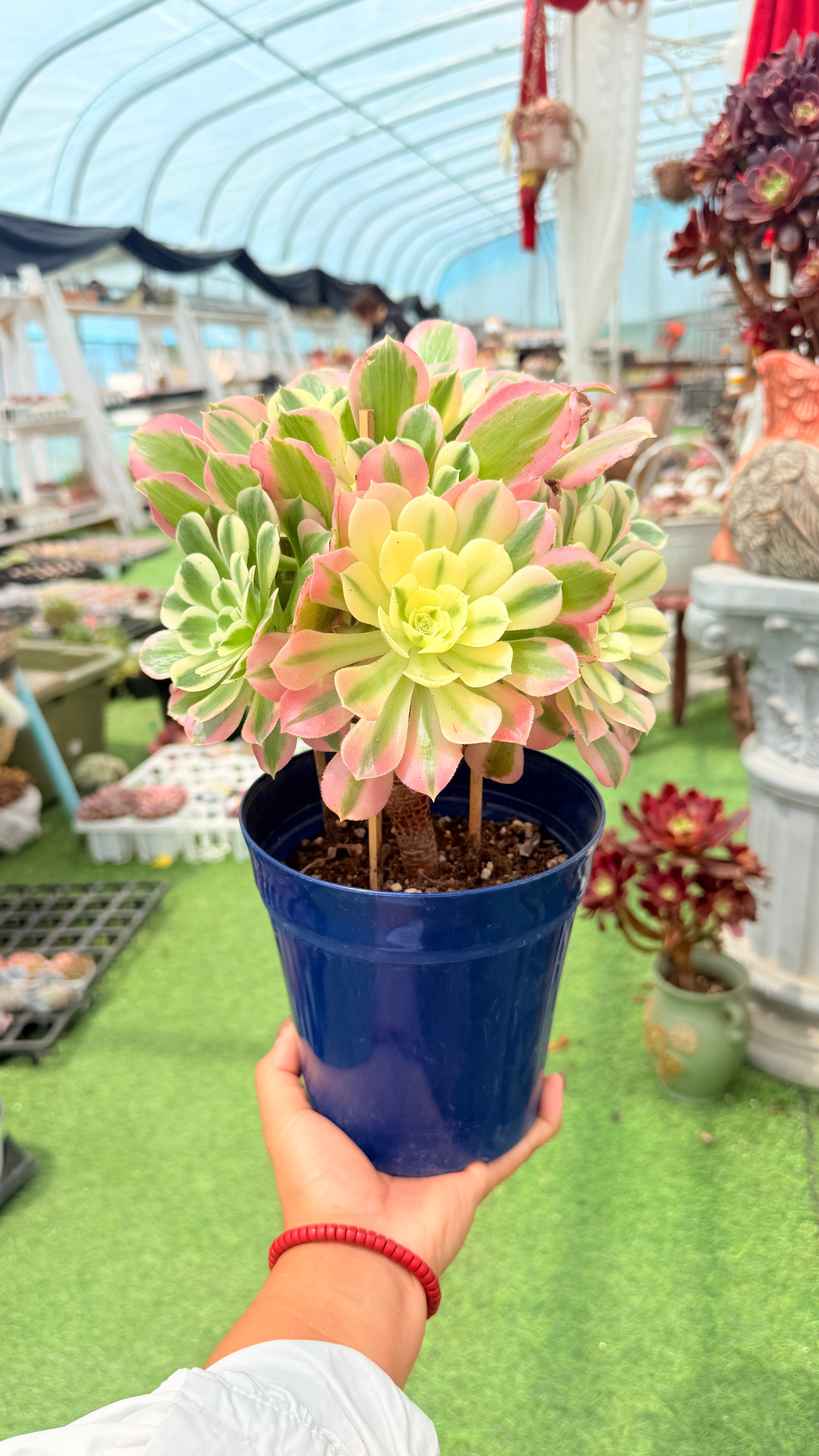 本品は複数の頭が立ち上がった群生株(多头)。一つひとつのロゼットがそれぞれ異なる錦模様を持ち、見ているだけで飽きません。親株の「白鳳」の特徴をしっかり受け継いでおり、葉は大きく肉厚で、存在感は抜群。株が大きくなればなるほどその迫力と錦のコントラストはより鮮やかになり、コレクションの中心に据えたくなる佳品です。