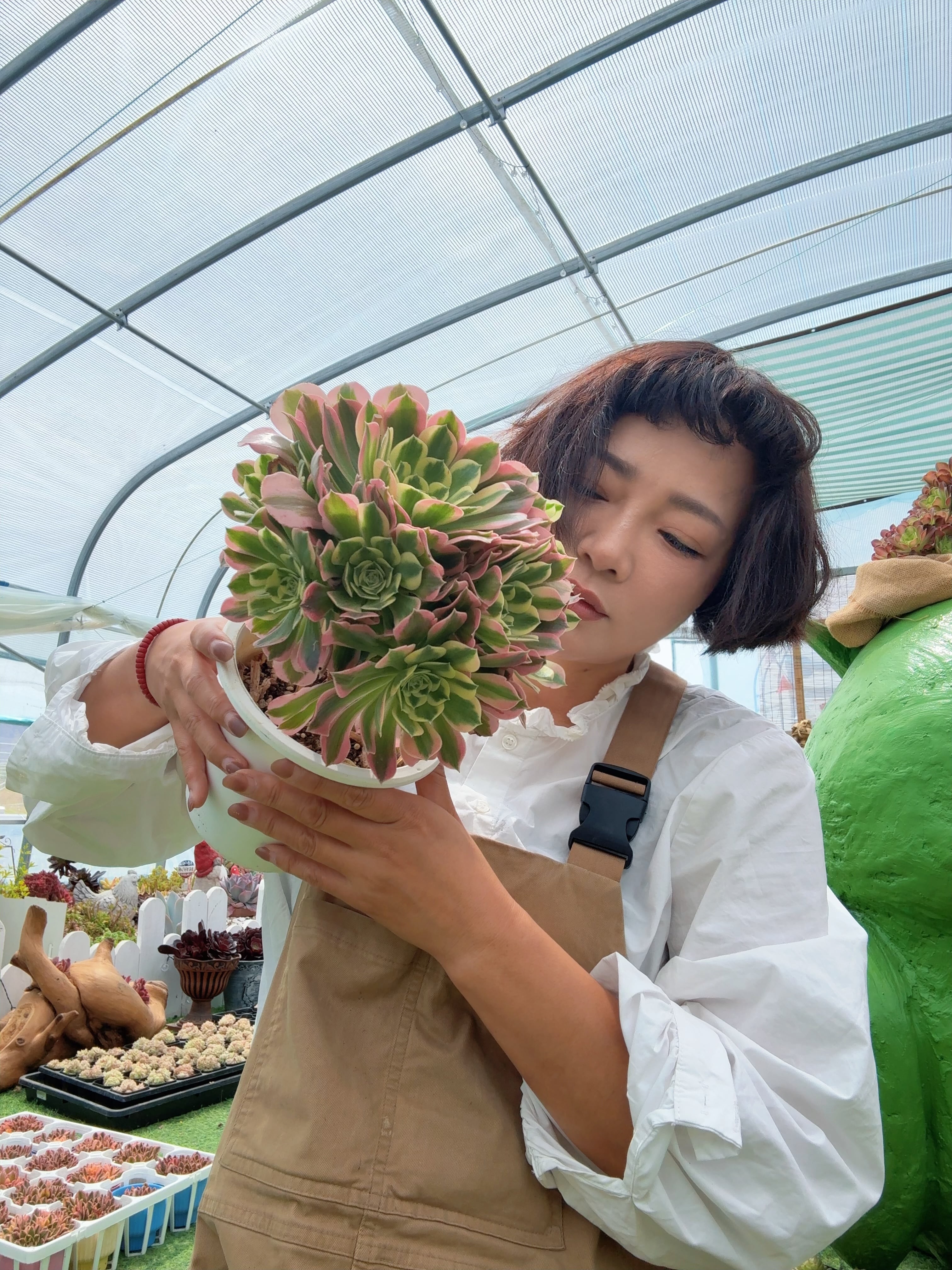 本品は複数の頭が立ち上がった群生株(多头)。一つひとつのロゼットがそれぞれ異なる錦模様を持ち、見ているだけで飽きません。親株の「白鳳」の特徴をしっかり受け継いでおり、葉は大きく肉厚で、存在感は抜群。株が大きくなればなるほどその迫力と錦のコントラストはより鮮やかになり、コレクションの中心に据えたくなる佳品です。